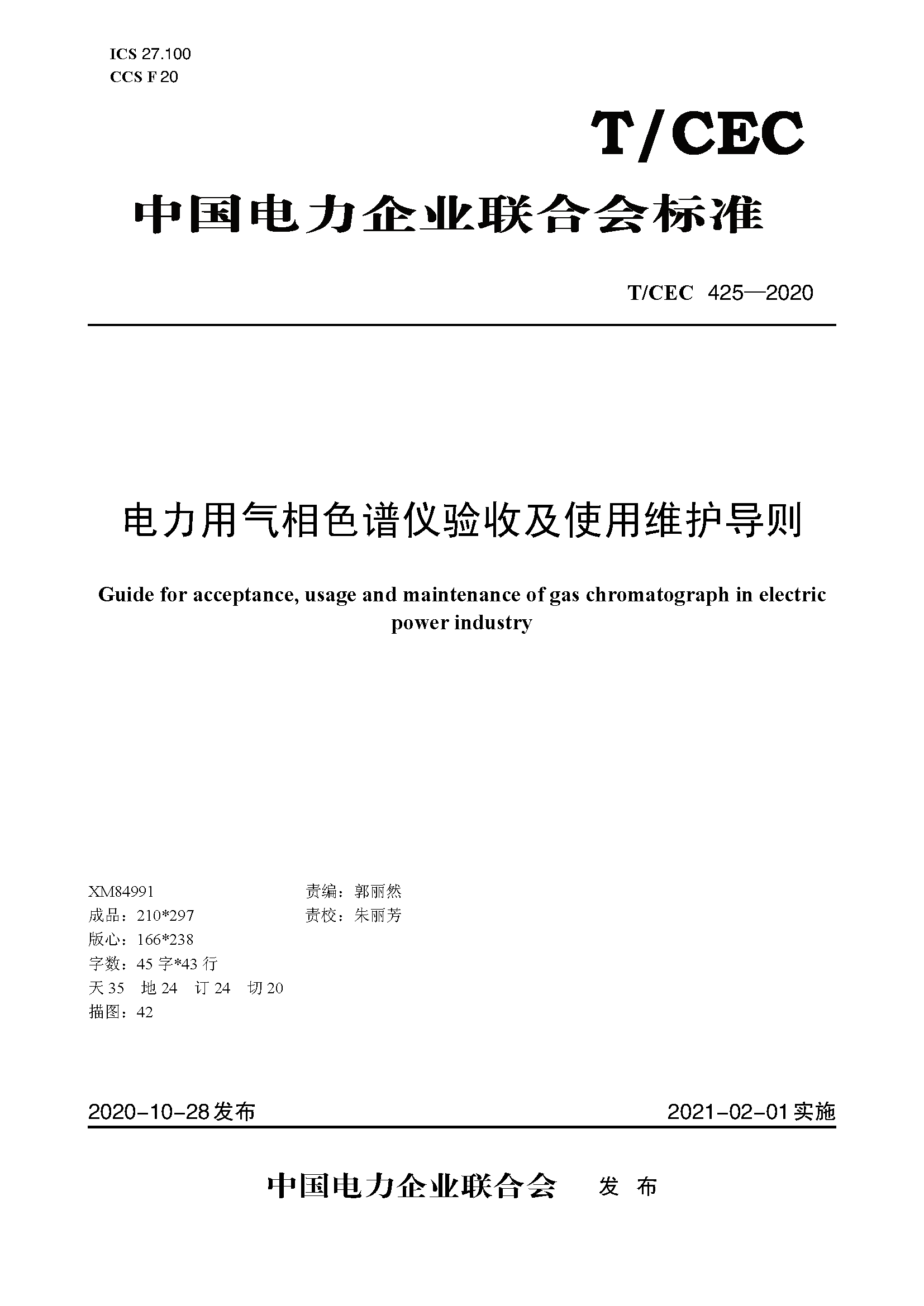 这项标准规定了绝缘油中溶解气体和六氟化硫气体实验室分析用气相色谱仪的验收标准以及使用维护注意事项。