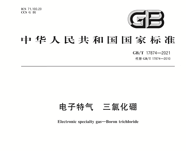 由华爱色谱参与起草的国家标准GB/T 17874-2021《电子特气 三氯化硼》于近期发布。